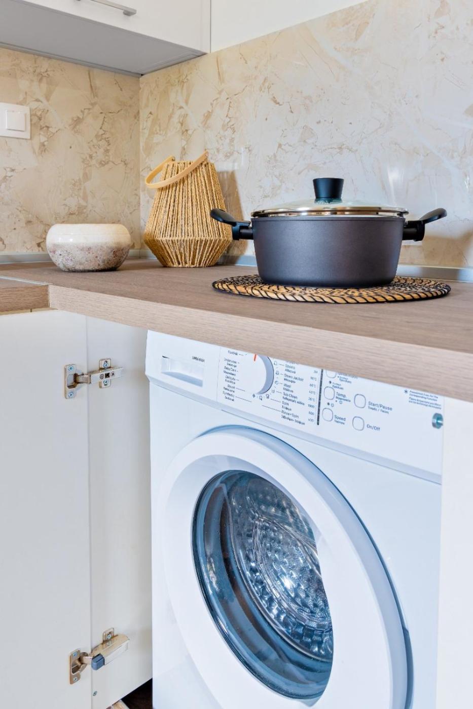 Two-Bedroom Apartment with Balcony. This spacious apartment comes with 1 living room, 2 separate bedrooms and 1 bathroom with a hairdryer. Guests can make meals in the kitchen that features a stovetop, a refrigerator, a dishwasher and kitchenware. The air-conditioned apartment features a flat-screen TV, a washing machine, a tea and coffee maker, a seating area as well as garden views. The unit has 5 beds.